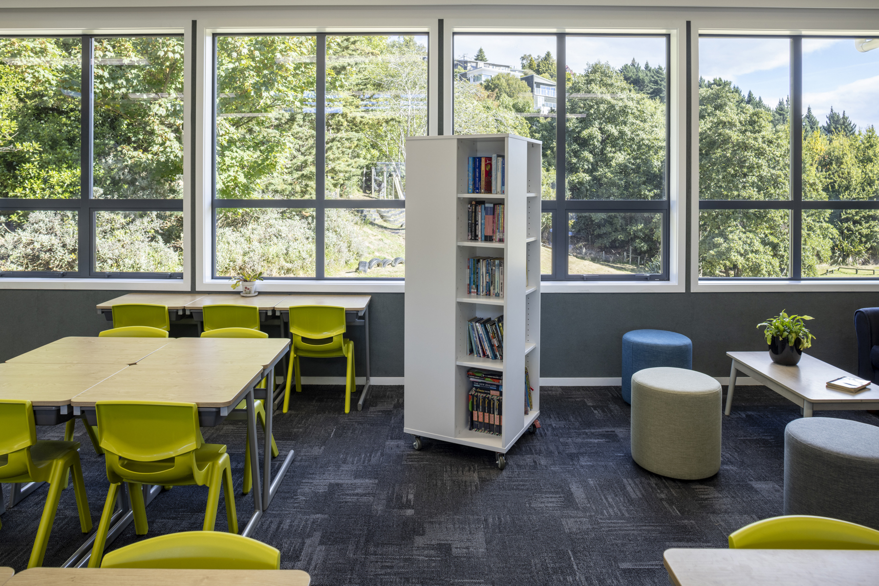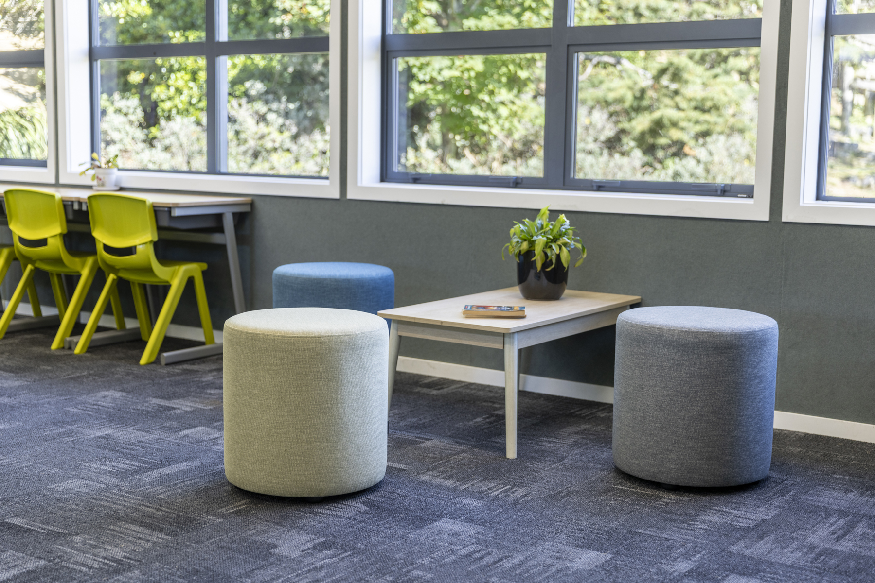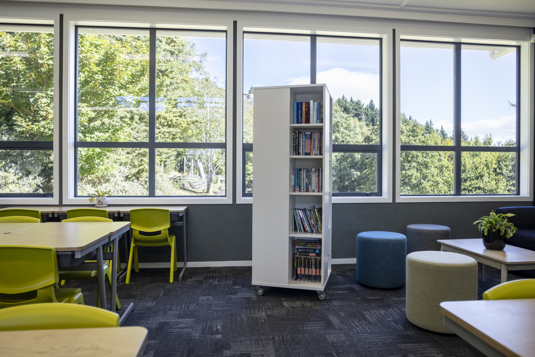 We get many complimentsabout the senior classroom block and the clever choices of furniture. The library stands should be compulsory in every classroom. They are a real space saver and they hold the equivalent of two and a half large traditional classroom bookcases! The students love using this library stand. class* are custom making large 900mm ottomans to match the others we purchased. These will be a fantastic soft furnishing addition for the classes.