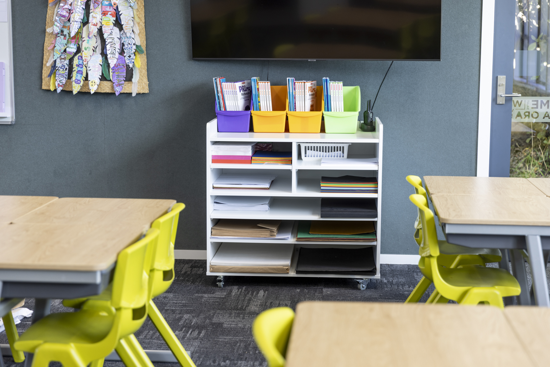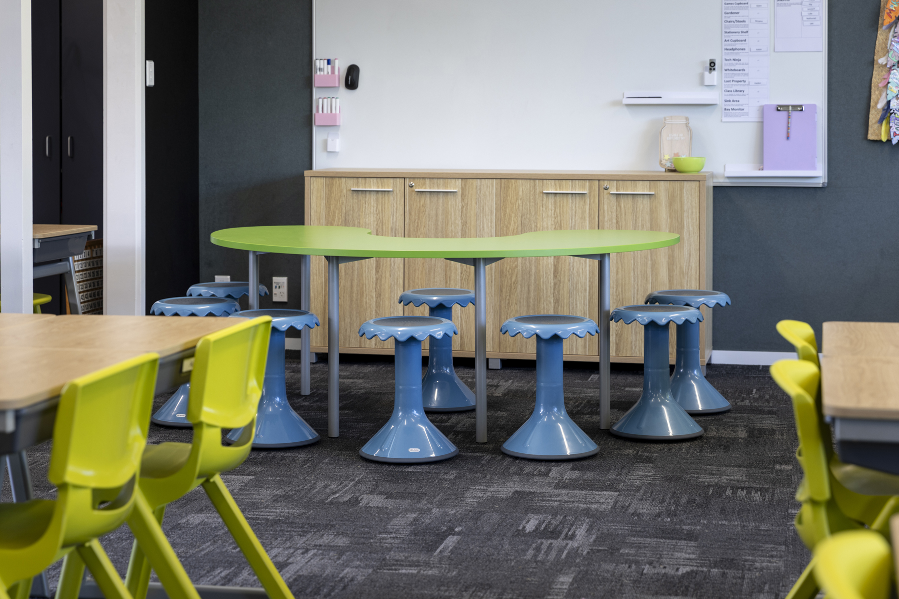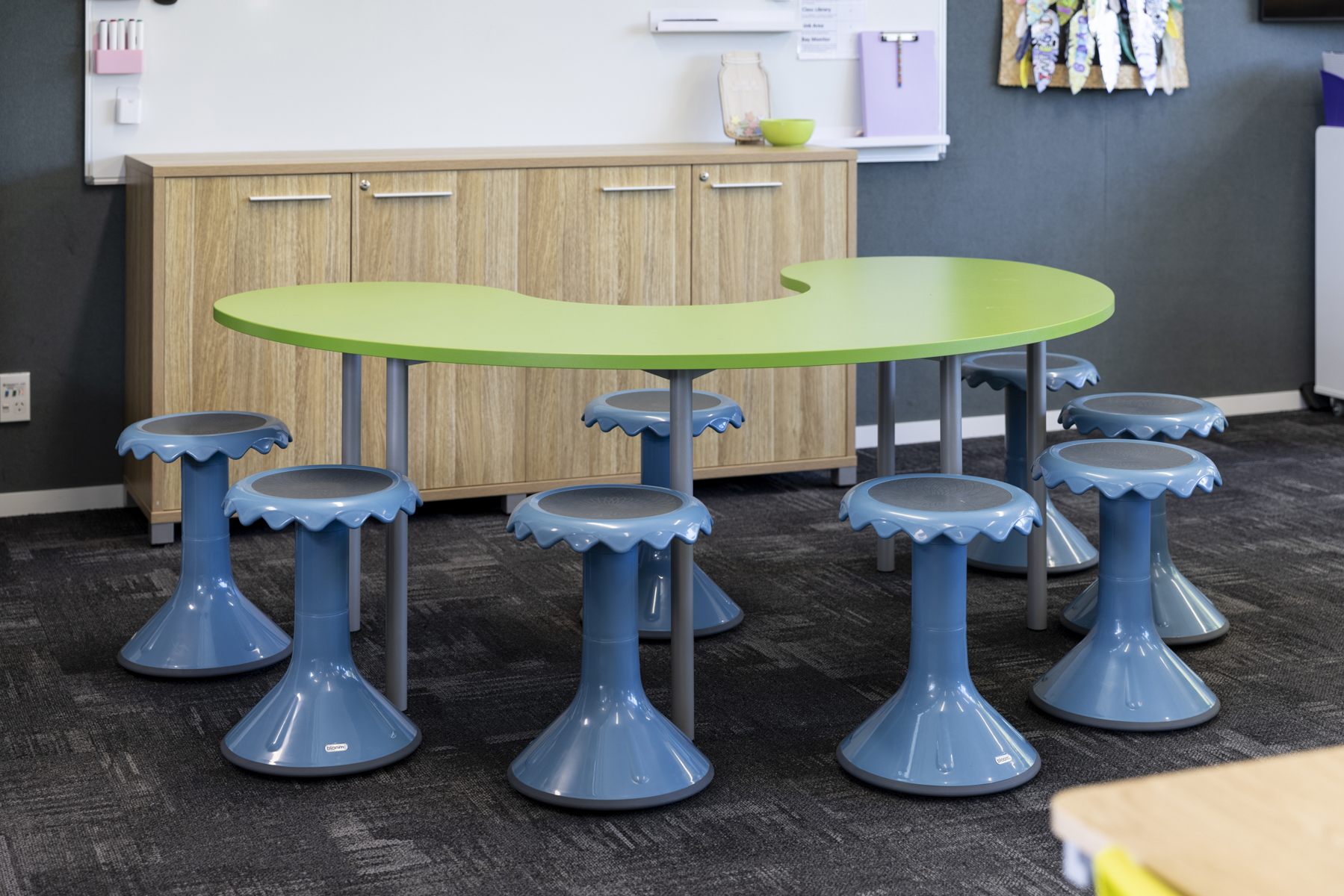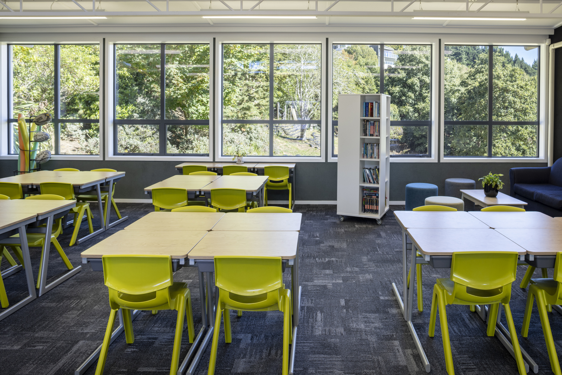 We get many complimentsabout the senior classroom block and the clever choices of furniture. The library stands should be compulsory in every classroom. They are a real space saver and they hold the equivalent of two and a half large traditional classroom bookcases! The students love using this library stand. class* are custom making large 900mm ottomans to match the others we purchased. These will be a fantastic soft furnishing addition for the classes.